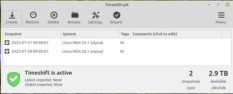 Timeshift is a utility that takes scheduled snapshots (back-ups) of a filesystem allowing the user of a computer to roll it back to a previous, working state should a bad update or configuration change break it.