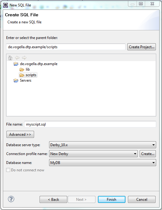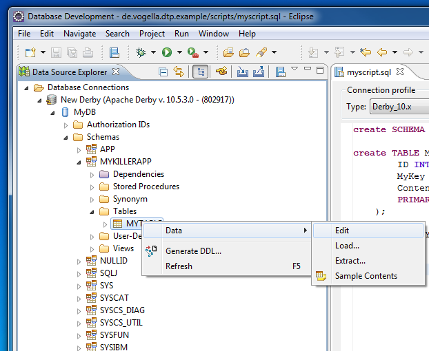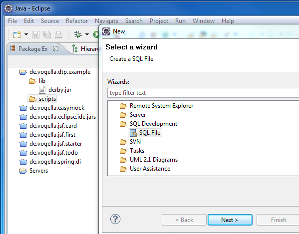 Similarly to the decision I took on re-inventing a tutorial on JavaServer Faces, I decided to follow one on the Eclipse Data Tools Platform Lars Vogel has done. Again, however, there are things to say that he has left unsaid. This is my attempt to help out the dummies among whom I am the oldest.