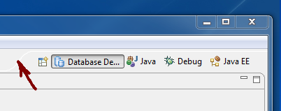 This will add a new perspective to the workbench, one that you'll need to accommodate (for width) if you don't want to access some of your existing perspectives via a drop-down menu. Simply grab the end of the barely visible edge of the perspectives tab (see big red arrow in this illustration) and drag it to the left to make more room. (If you're like me, for years I never even noticed that you could do this until I accidently happened upon it.)
